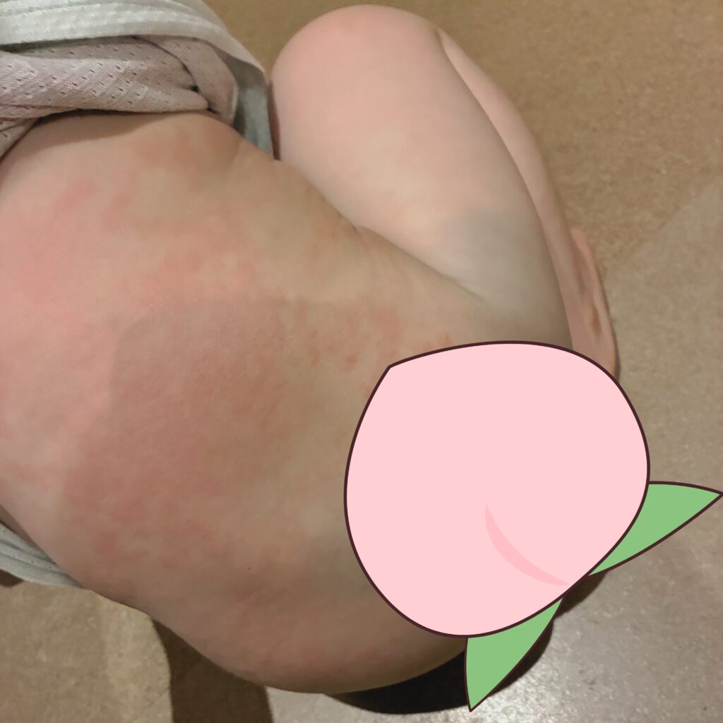 最初に気づいたのはお風呂に入る直前でした。背中を中心に赤い発疹が出ていて、その後、足や顔にも少し広がっていきました。顔は少しかゆそうに見えましたが、全体的には痒みは軽く、かゆがって泣くことはありませんでした。