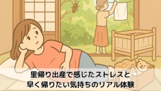 マタニティ記録 里帰り出産で感じたストレスと早く帰りたい気持ちのリアル体験 妊娠33週から始まった里帰り出産。安心できるはずの実家で感じたストレスやホームシック、「早く帰りたい」と思ってしまう瞬間がありました。準備から出産、産後までの3か月をリアルに振り返り、両親や夫との距離感、実家ならではの悩み、心を軽くした工夫をまとめた体験談です。 2025.10.07 マタニティ記録育児記録
